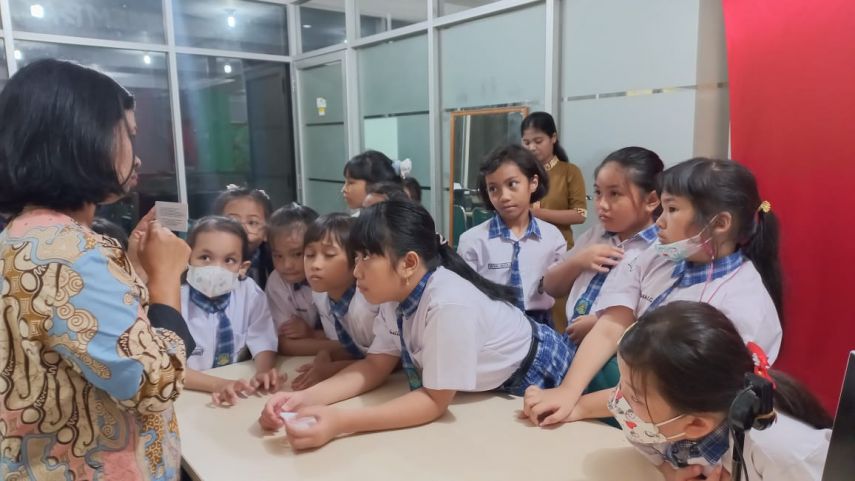GARISPENA.CO - SAMARINDA - Keceriaan mewarnai Dinas Perpustakaan dan Kearsipan (DPK) Kaltim di hari pertama kerja pasca sepekan memperingati hari Raya Idulfitri. Rombongan siswa Sekolah Dasar St. Fransiskus Assisi melakukan visitasi ke dinas yang berlokasi di Jalan Ir.H.Juanda, pada Rabu (26/4).