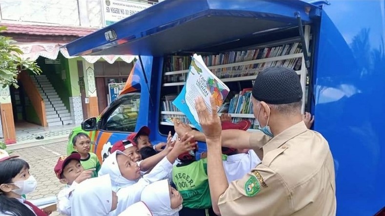 GARISPENA.CO - SANGATTA - Guna meningkatkan minat baca masyarakat, Dinas Perpustakaan dan Kearsipan Kutai Timur (Kutim) menugaskan mobil perpustakaan keliling setiap harinya mengitari kota Sangatta.