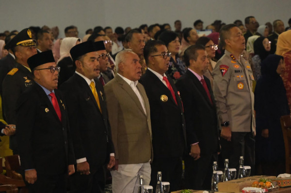 Pj Gubernur Kaltim Akmal Malik yang dirangkai pisah sambut Gubernur dan Wakil Gubernur Katim Isran Noor dan Hadi Mulyadi, di Plenary Hall Samarinda, Rabu (4/10/23).