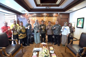 TERIMA: Wakil Ketua DPRD Kaltim Sigit Wibowo, Ketua dan Sekretaris Komisi IV DPRD Kaltim Akhmed Reza Fahlevi dan Edy Sunardi Darmawan, dan Yenni Eviliana bersama Menteri Desa, Pembangunan Daerah Tertinggal, dan Transmigrasi RI A Halim Iskandar di ruang ke