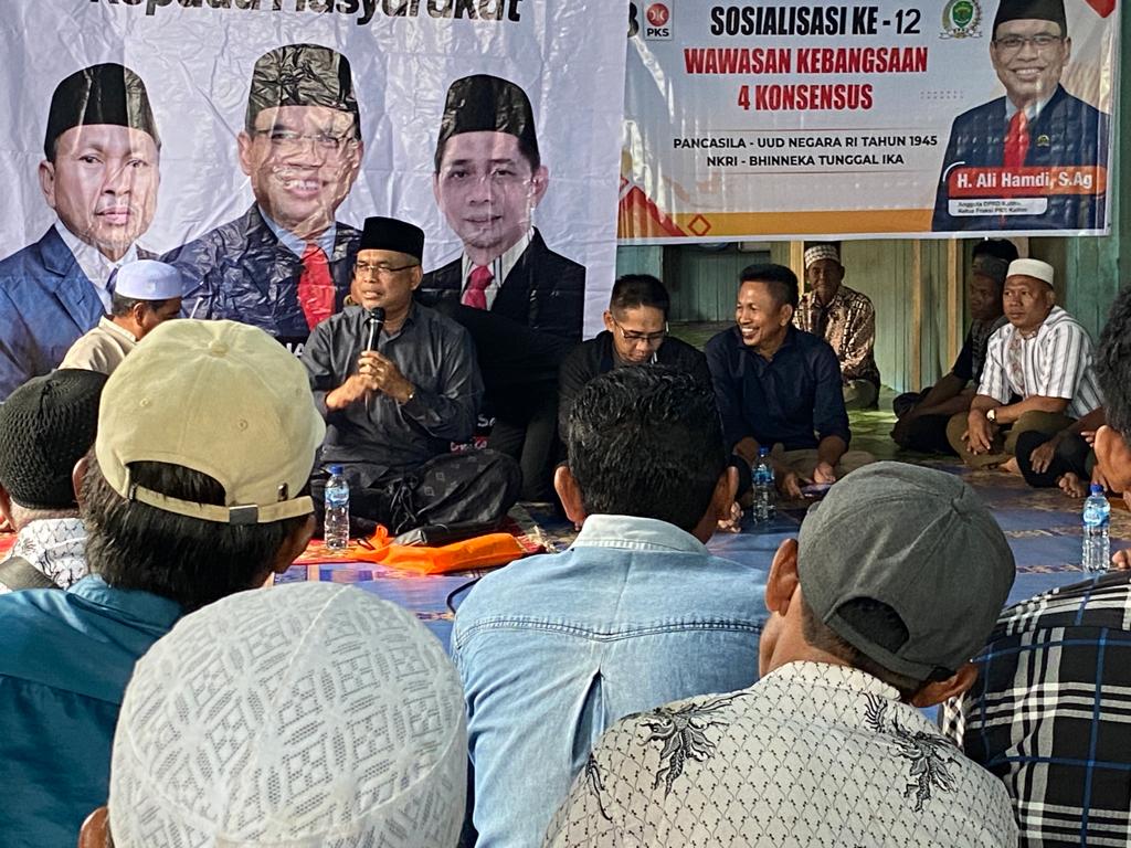 GARISPENA.CO - TENGGARONG - Pentingnya memberikan pemahaman tentang pilar-pilar Bangsa Indonesia, Anggota Dewan Perwakilan Rakyat Daerah (DPRD) Kalimantan Timur (Kaltim), H Ali Hamdi, melaksanakan Sosialisasi wawasan kebangsaan (Sowasbang) Ke-12 di Desa Jantur Selatan, Kecamatan Muara Muntai, Kabupaten Kutai Kartanegara, Rabu (20/12).