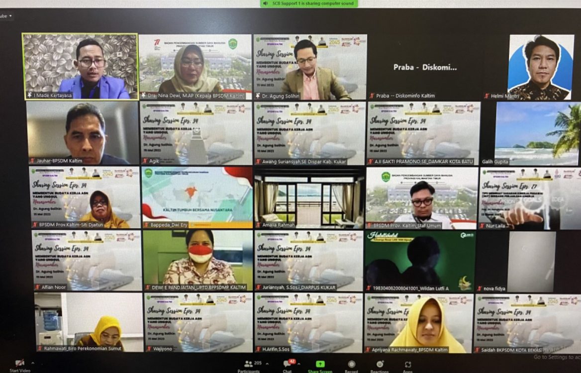 GARISPENA.CO - SAMARINDA - Badan Pengembangan Sumber Daya Manusia Provinsi Kalimantan Timur (BPSDM Prov. Kaltim) terus mendorong Aparatur Sipil Negera (ASN) untuk terus memberikan pelayanan yang baik dan berkualitas, salah satunya dengan mengadakan sharing session episode 34 yakni membentuk budaya kerja ASN yang unggul secara daring, Senin (15/05/23).