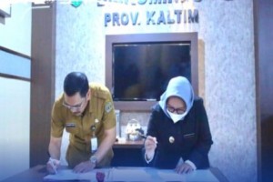 GARISPENA.CO - SAMARINDA - Penandatanganan Perjanjian Antara Pemerintah Provinsi Kalimantan Timur dengan Lembaga Penyiaran Publik (LPP) Radio Republik Indonesia (RRI) Samarinda tentang Pemberian Hibah. Penandatanganan tersebut antara Kepala Dinas Komunikasi dan Informatika Provinsi Kalimantan Timur, Muhammad Faisal selaku Pihak pertama dengan Kepala RRI Samarinda, Arlin Setyaningsih selaku Pihak Kedua. Acara tersebut berlangsung di ruang kerja Kepala Diskominfo Kaltim, Senin (21/03/22).