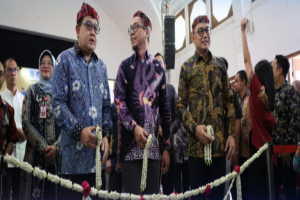 KOLABORASI: Dirjen Informasi dan Komunikasi Publik, Kementerian Komunikasi dan Informatika Usman Kansong (tengah) membuka KIMFest di Surabaya, Jawa Timur.