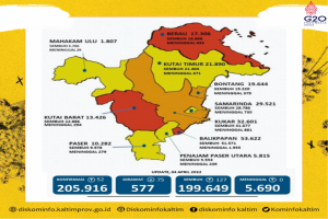 Kabar terbaiknya, tidak ada tambahan kasus meninggal dunia alias nol kasus. Dengan demikian kasus positif di Kaltim sebanyak 205.916 kasus, sembuh 199.649 kasus dan meninggal 5.690 kasus. (adv/kominfo)