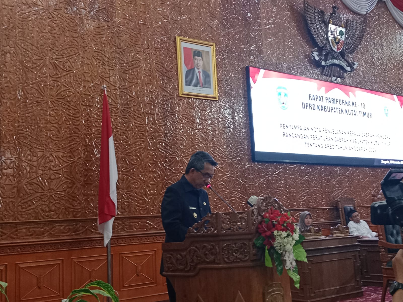 Penyampaian yang dilaksanakan di Ruang Sidang Utama Gedung Dewan Perwakilan Rakyat Daerah (DPRD) Kutim, Rabu (8/11/2023). Dipimpin langsung oleh Ketua DPRD Kutim Joni, serta dihadiri oleh 22 anggota DPRD.