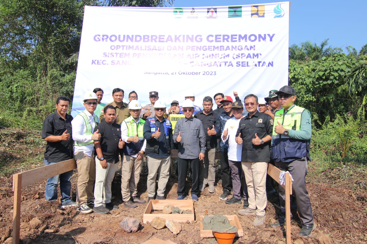 GARISPENA.CO - SANGATTA - Bupati Kutim Ardiansyah Sulaiman smelakukan peletakan batu pertama pembangunan Instalasi Pengolahan Air (IPA) Sangkima, Desa Sangkima, Kecamatan Sangatta Selatan, Sabtu (21/10/2023).