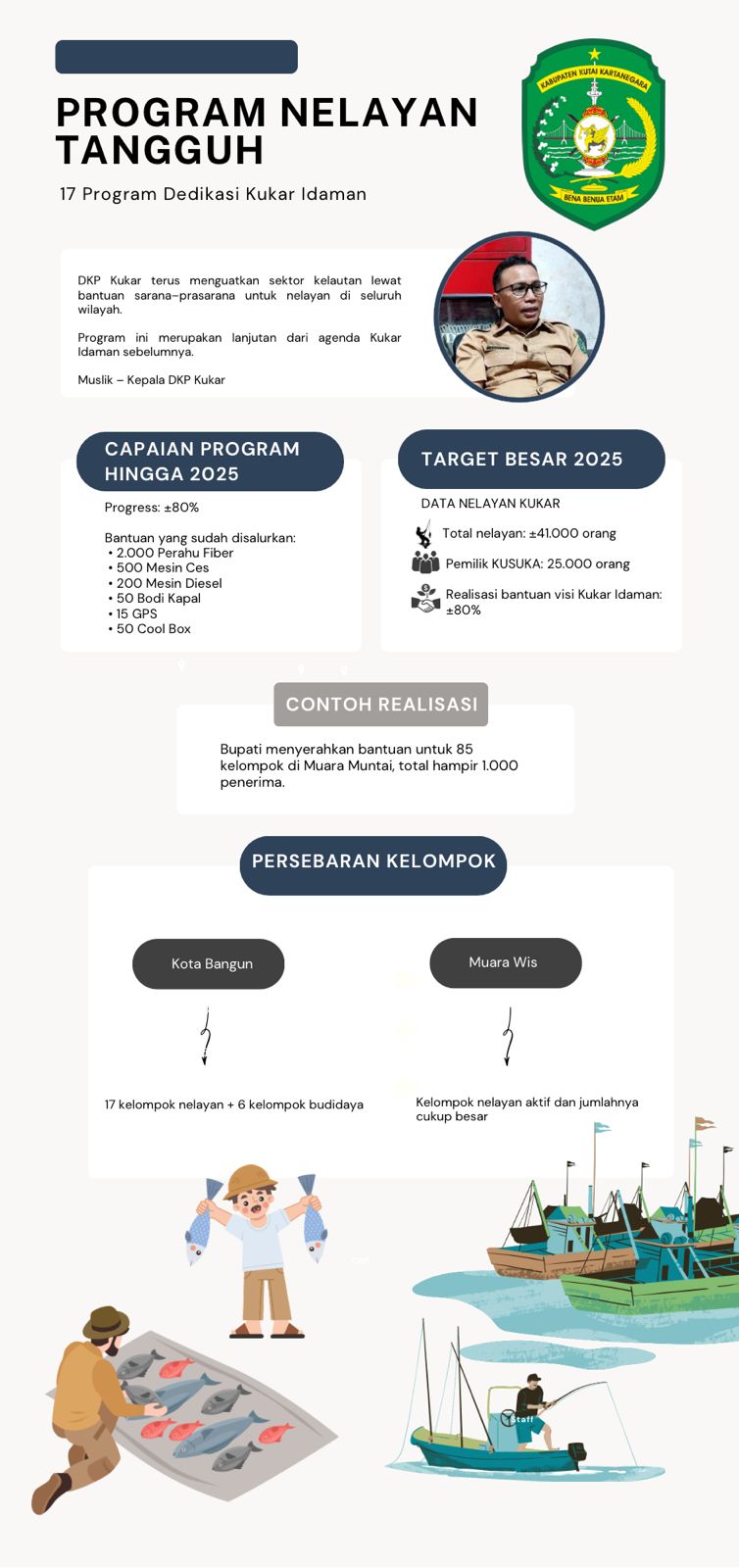 KUTAI KARTANEGARA - Pemerintah Kabupaten Kutai Kartanegara (Kukar) terus memperkuat dukungan bagi nelayan melalui Program Nelayan Tangguh, bagian dari 17 Program Dedikasi Kukar Idaman Terbaik.?