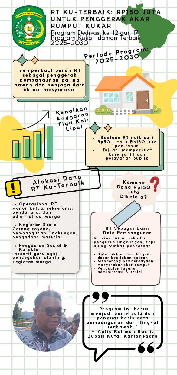 Kebijakan ini menjadi bagian dari Program Dedikasi ke-12 Kukar Idaman Terbaik 2025â2030, yang menempatkan RT sebagai ujung tombak pelayanan publik dan basis data pembangunan daerah.