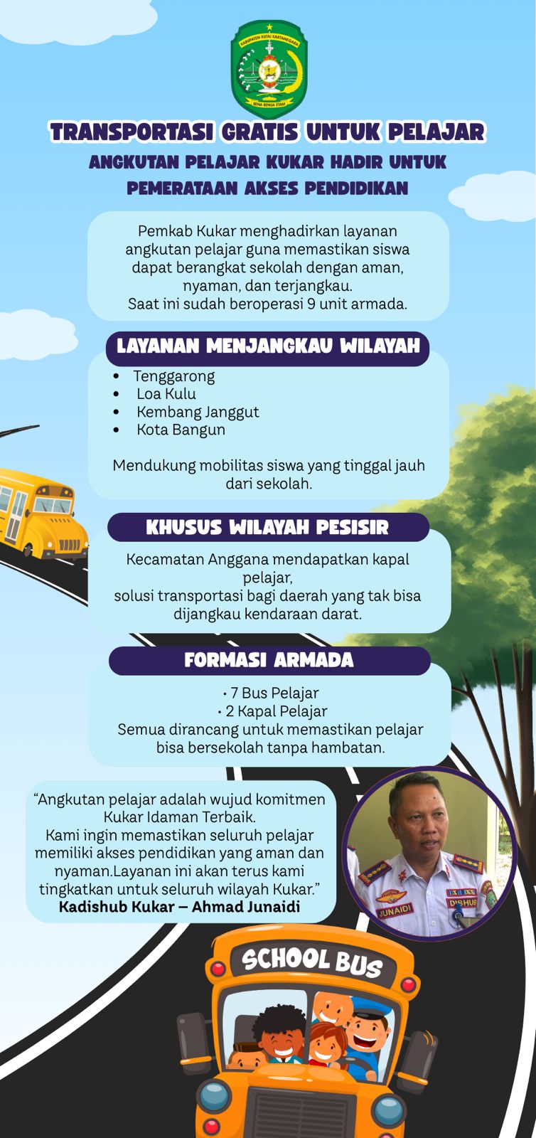 Kepala Dinas Perhubungan Kukar, Ahmad Junaidi, menegaskan bahwa program ini menjadi bagian dari komitmen Pemkab untuk meningkatkan layanan pendidikan.