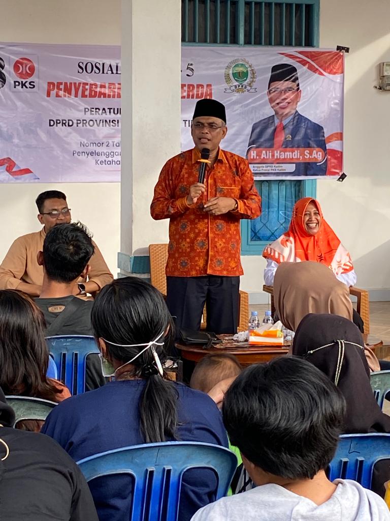 GARISPENA.CO - KUKAR - Kesejahteraan masyarakat Kaltim dimulai dari kualitas dan ketahanan keluarga. Hal ini menjadi perhatian wakil rakyat di Karang Paci sebutan lain dari kantor DPRD Kaltim. Seperti kegiatan yang digelar Anggota DPRD Provinsi Kaltim, H Ali Hamdi melaksanakan kegiatan Penyebarluasan Peraturan Daerah (Peperda) nomor 2 tahun 2022 tentang Penyelenggaraan Pembangunan Ketahanan Kelurahan Sarijaya, Kecamatan Sanga-Sanga, Kukar, Jumat (19/5).