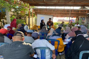 FOTO : Terlihat salah satu peserta maju kedepan saat melakukan sesi tanya jawab saat Sosbang kemarin.