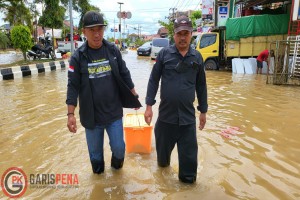 FOTO : Ketua AJKT Kutim, Sukriadi bersama tim AJKT terjun langsung ke area banjir untuk memberikan bantuan ke masyarakat secara langsung.