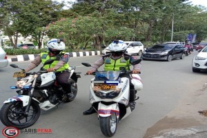 Jajaran Satlantas Polresta Samarinda melakukan patroli awal penerapan mobile e-tilang di kawasan tepian sungai Mahakam