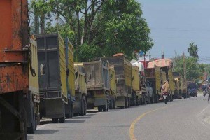 Foto : Truk yang tengah antre Bahan Bakar Minyak (BBM) di SPBU Jalan Untuk Suropati Kelurahan Karang Asam Ulu Sungai Kunjang