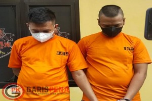 Foto : Tim polresta samarinda saat melakukan rilis 2tersangka kasus penjambretaan di halaman mako polresta samarinda, pada rabu /06/2021 pukul 14:00 wita.